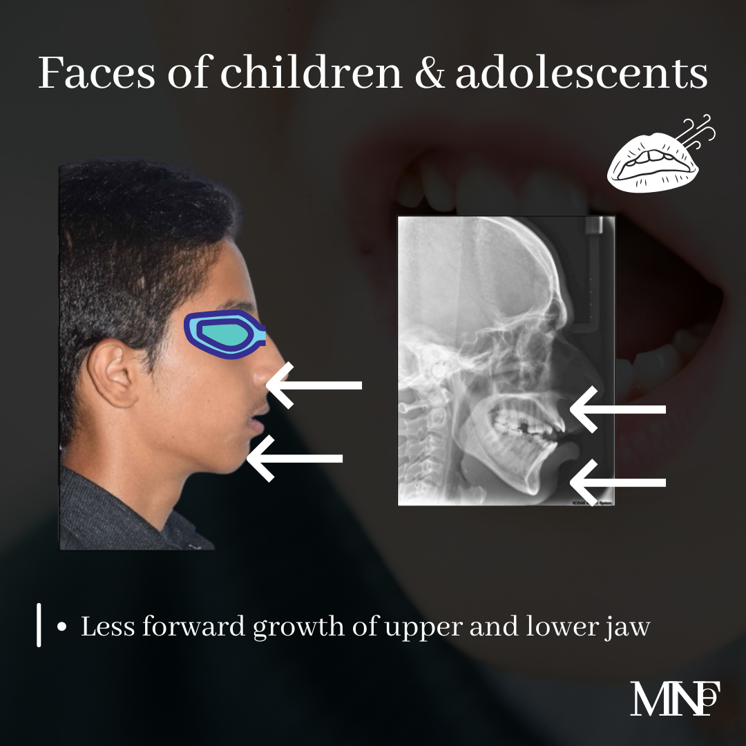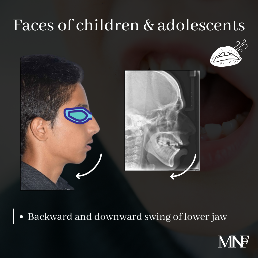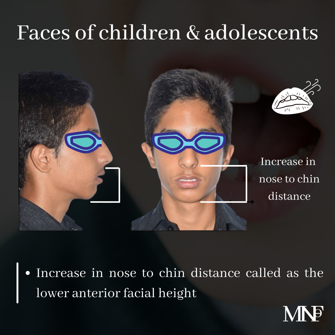 [ultimate_spacer height=”20″][ultimate_heading main_heading=”Effects of Mouth breathing on faces of children & adolescents” heading_tag=”h3″ alignment=”left” margin_design_tab_text=””][/ultimate_heading][ultimate_spacer height=”15″][vc_column_text]Mouth breathing is a habit when breathing if preferred through mouth instead of nose. This hampers all the functions of nasal breathing and affects the faces of growing children.The facial features observed are-