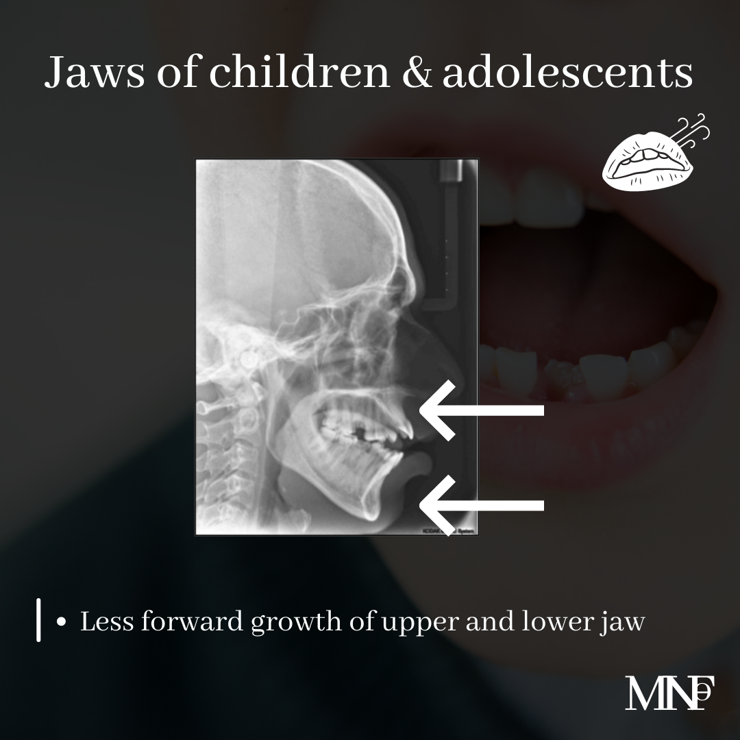 - Less forward growth of upper and lower jaw