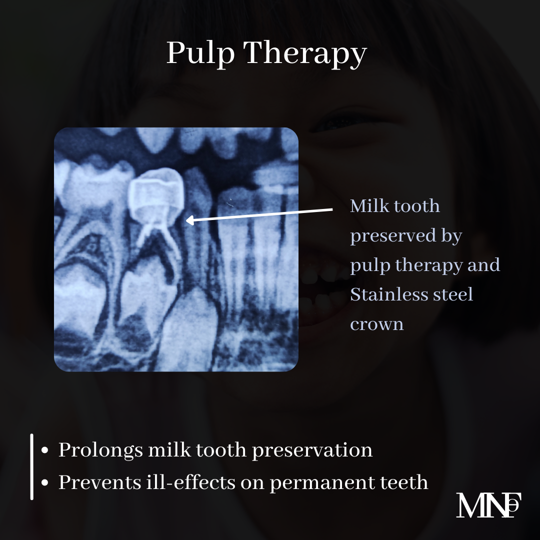 Pulp therapy is a very effective treatment for advanced dental decay in milk teeth. Save milk teeth because they perform important functions that affect oral and overall health of the child.[/ultimate_heading][ultimate_spacer height=”15″][/vc_column][/vc_row][vc_row][vc_column][vc_toggle title=”Reference”][Advanced research on root canal therapy for primary teeth][/vc_toggle][/vc_column][/vc_row]