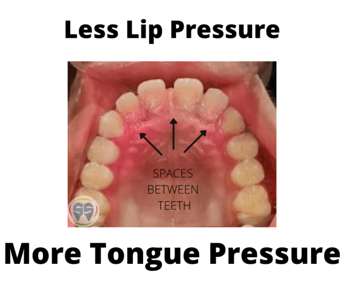 [ultimate_spacer height=”30″][vc_wp_text]If the pressure from tongue is more, teeth start to move outwards and spaces can be seen between them. [/vc_wp_text][ultimate_spacer height=”10″][ultimate_spacer height=”30″][vc_wp_text]People with spaces between teeth have more tongue pressure. And they keep on pushing their teeth outwards. We call this pushing habit as Tongue Thrusting. Tongue thrusting can be present at rest, during swallowing and even during speaking.Is spacing between teeth treatable?